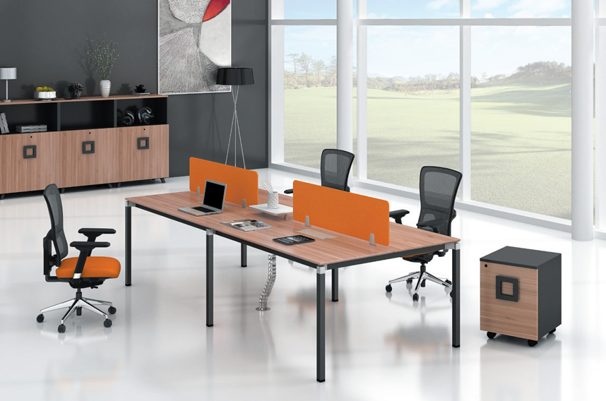 鋼木結構。桌架采用優質鋼梁焊接,桌架采用拆裝式結構,鋅合金配件與鋼梁相連接,鋼梁壁厚2MM,下配塑料可調腳。
